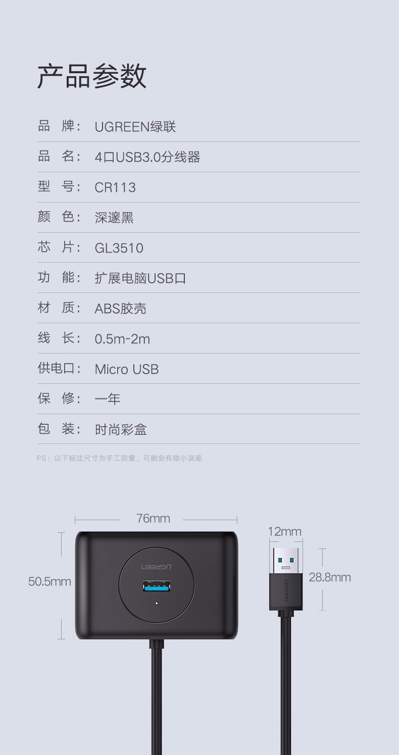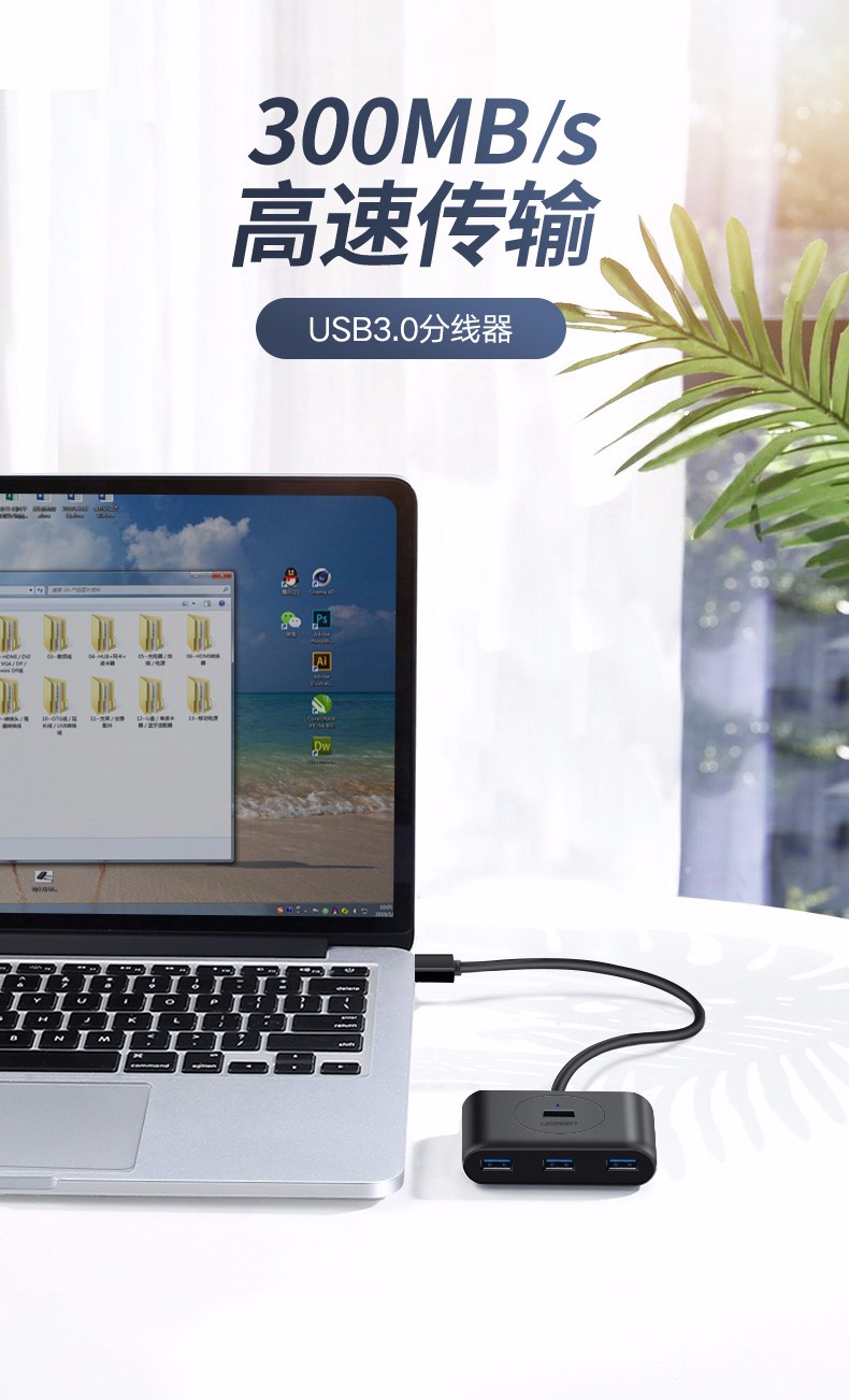 綠聯(lián) CR113 USB3.0分線器HUB集線器一拖四OTG集線器電腦筆記本高速type-c口擴(kuò)展HUB【USB款】 2米 黑色 單個(gè)裝