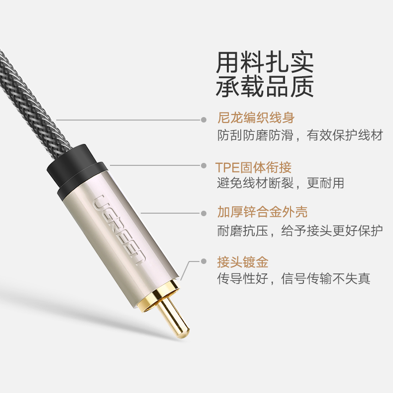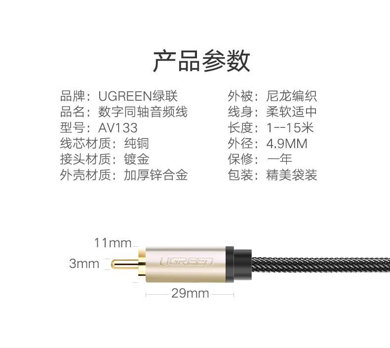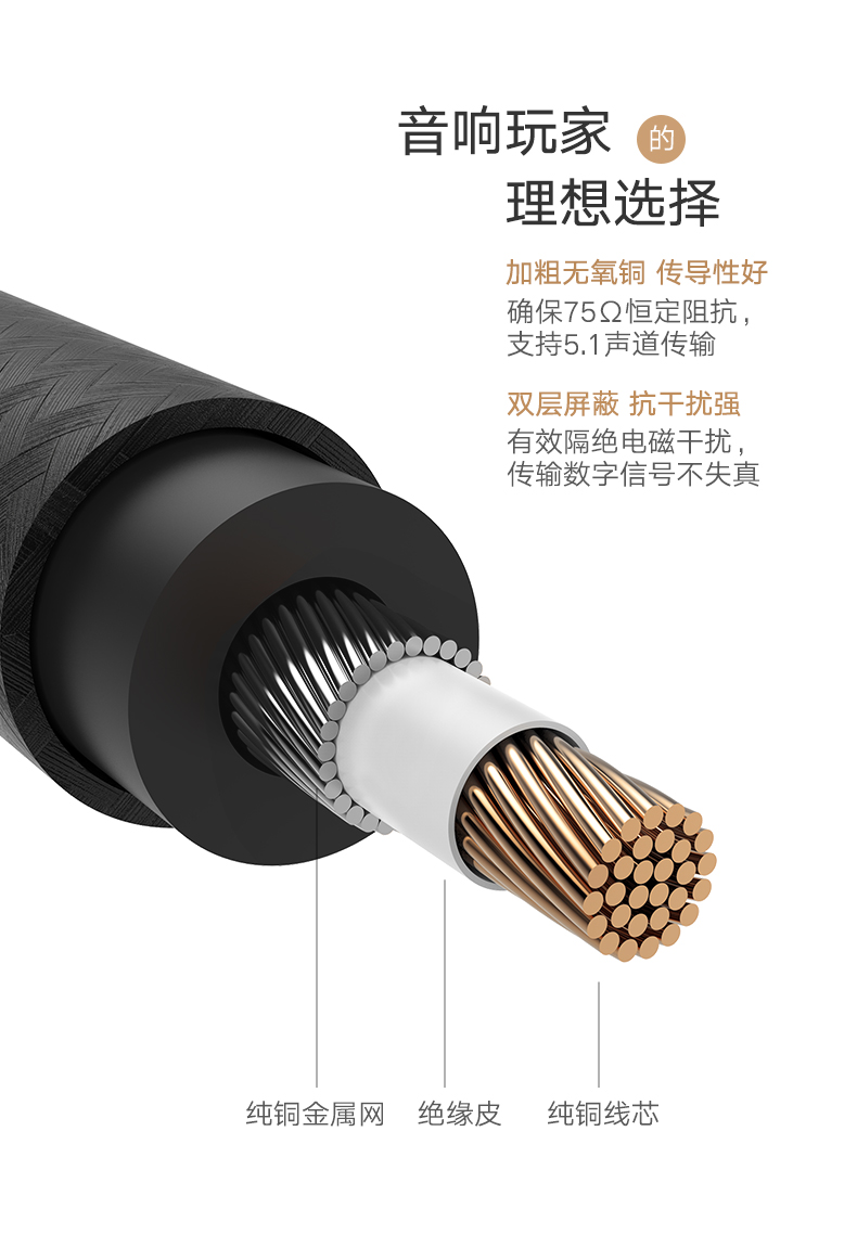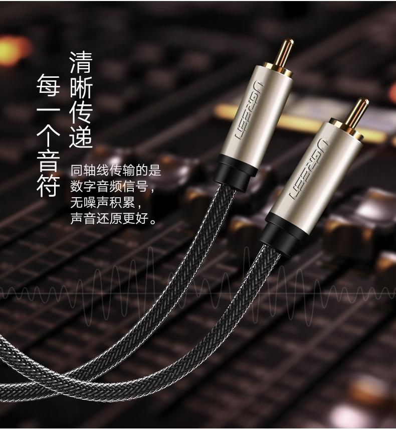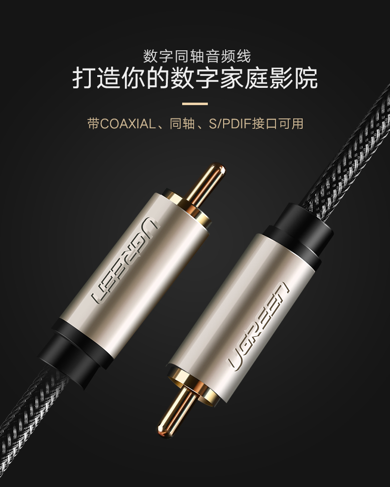 綠聯(lián) AV133 RCA蓮花頭數(shù)字同軸線音頻線低音炮發(fā)燒級(jí)公對(duì)公轉(zhuǎn)接線SPDIF音響箱功放75歐連接線適用小米電視 2米 黑色 單個(gè)裝