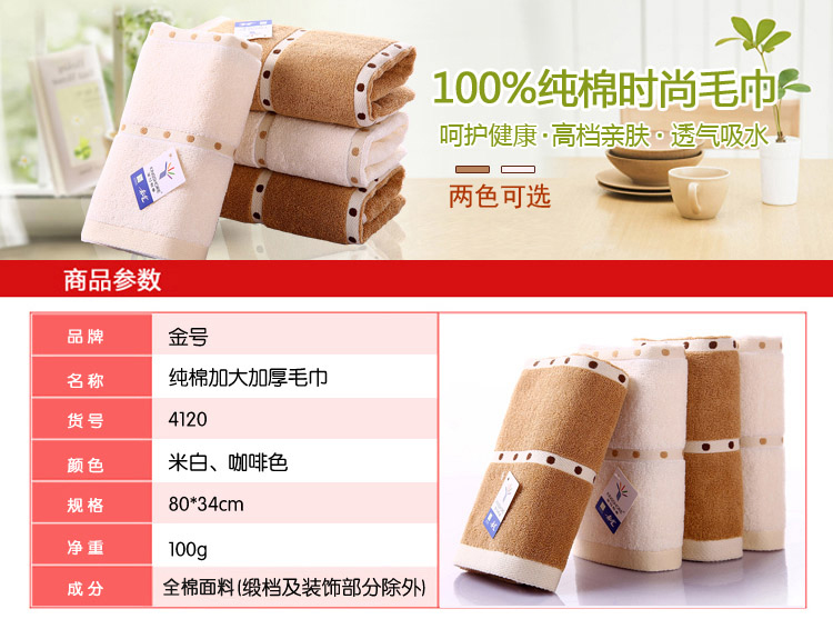 金號(hào)毛巾 4120純棉吸水加大加厚 80*34cm 單位:條
