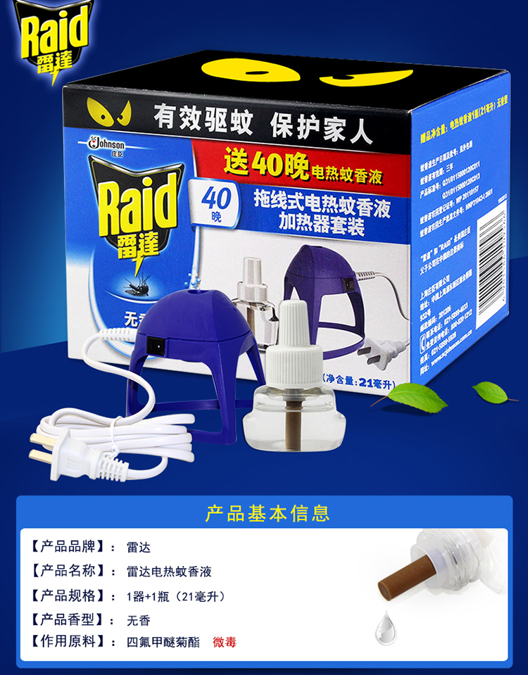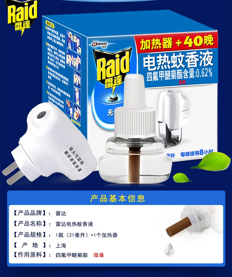 雷達(dá) 電熱蚊香液套裝 1器+1液(40晚) 單位:盒