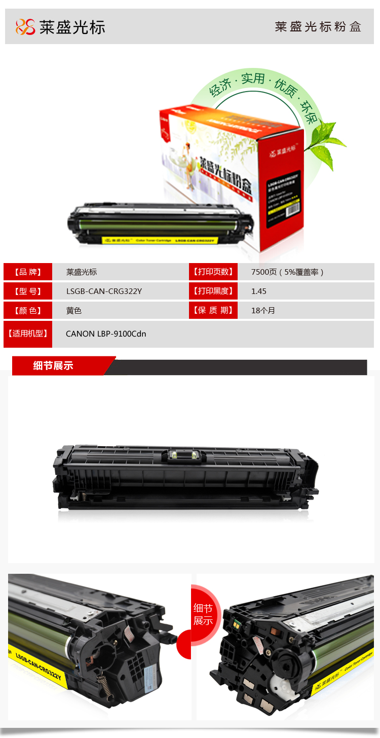 萊盛光標硒鼓 LSGB-CAN-CRG322Y 黃色 單位:支