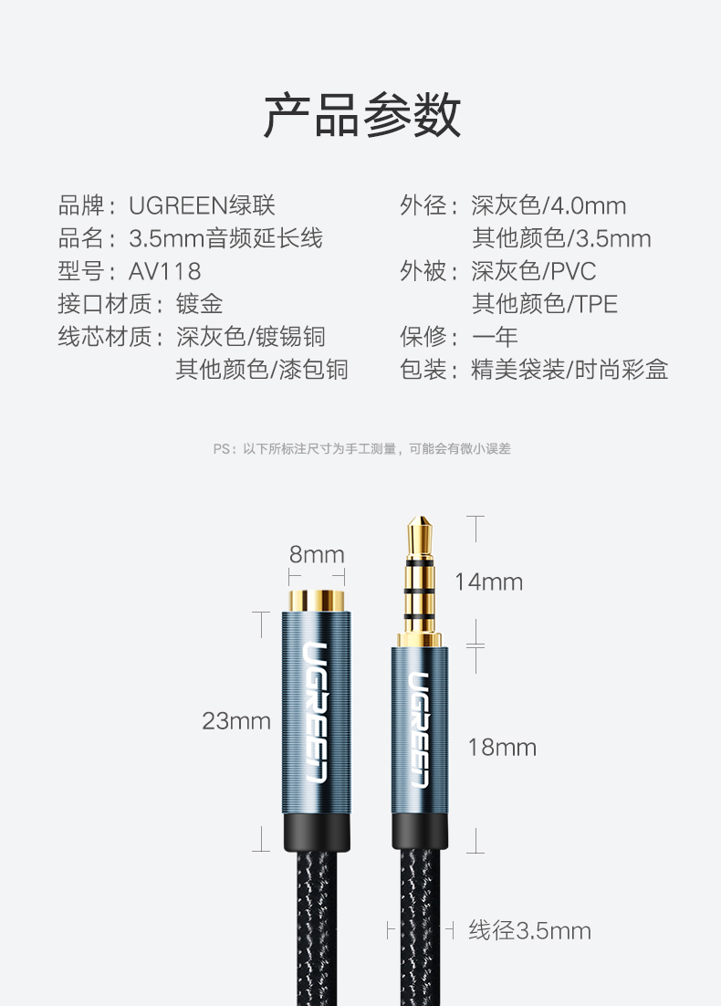 綠聯(lián) AV118 3.5mm音頻線公對母 2米 藍色 單位:根