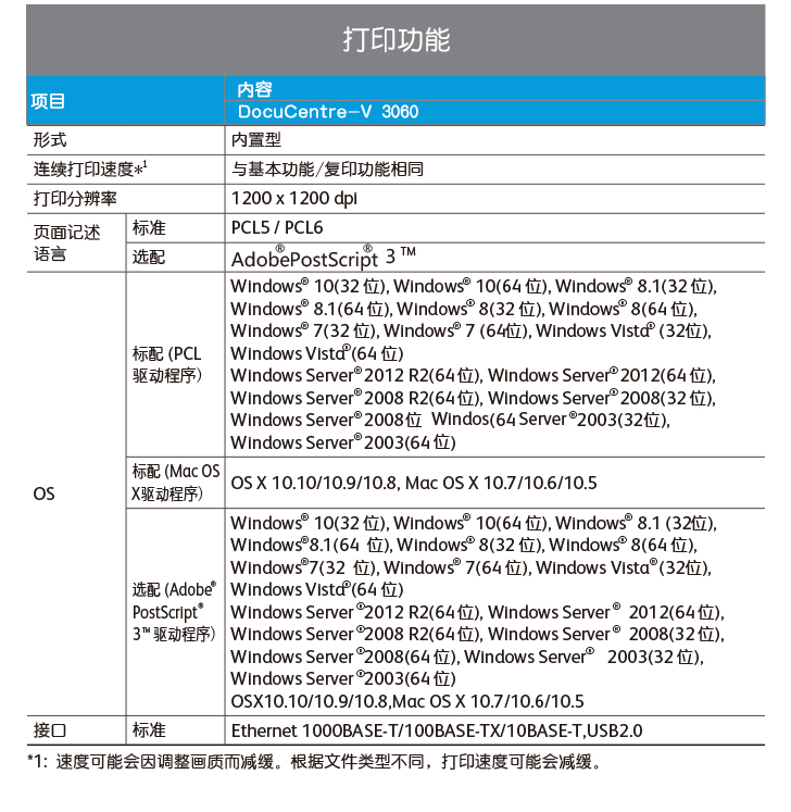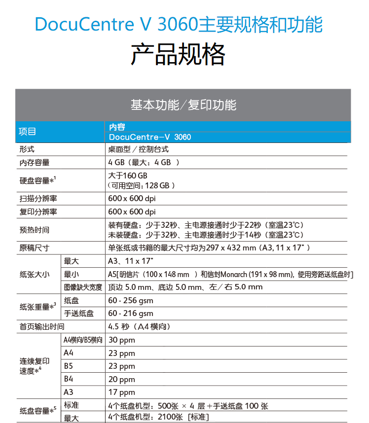 富士施樂復(fù)印機(jī) DocuCentre-V 3060 CPS 4Tray 黑白激光復(fù)合復(fù)印機(jī) 單位:臺