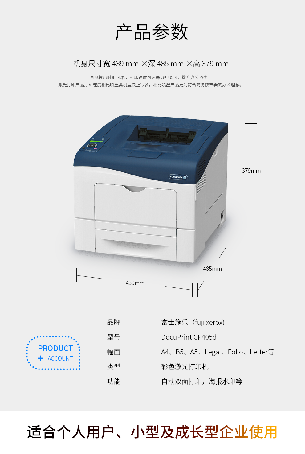 富士施樂彩色激光打印機(jī) DocuPrint CP405d 單位::臺(tái)