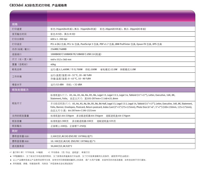 OKI激光打印機(jī) C833dnl 單位:臺(tái)