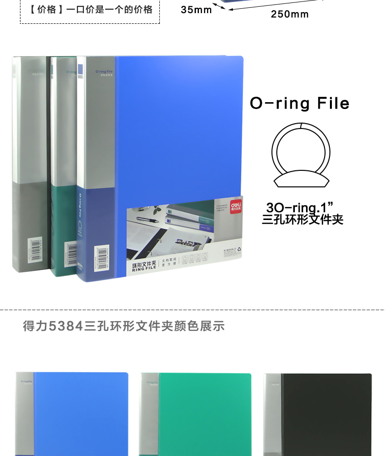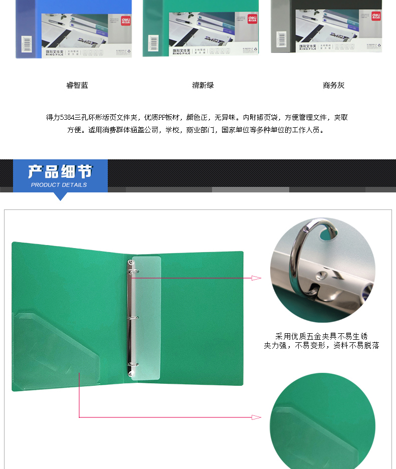 得力打孔文件夾 5384 A4紙3孔文件夾 單位:個