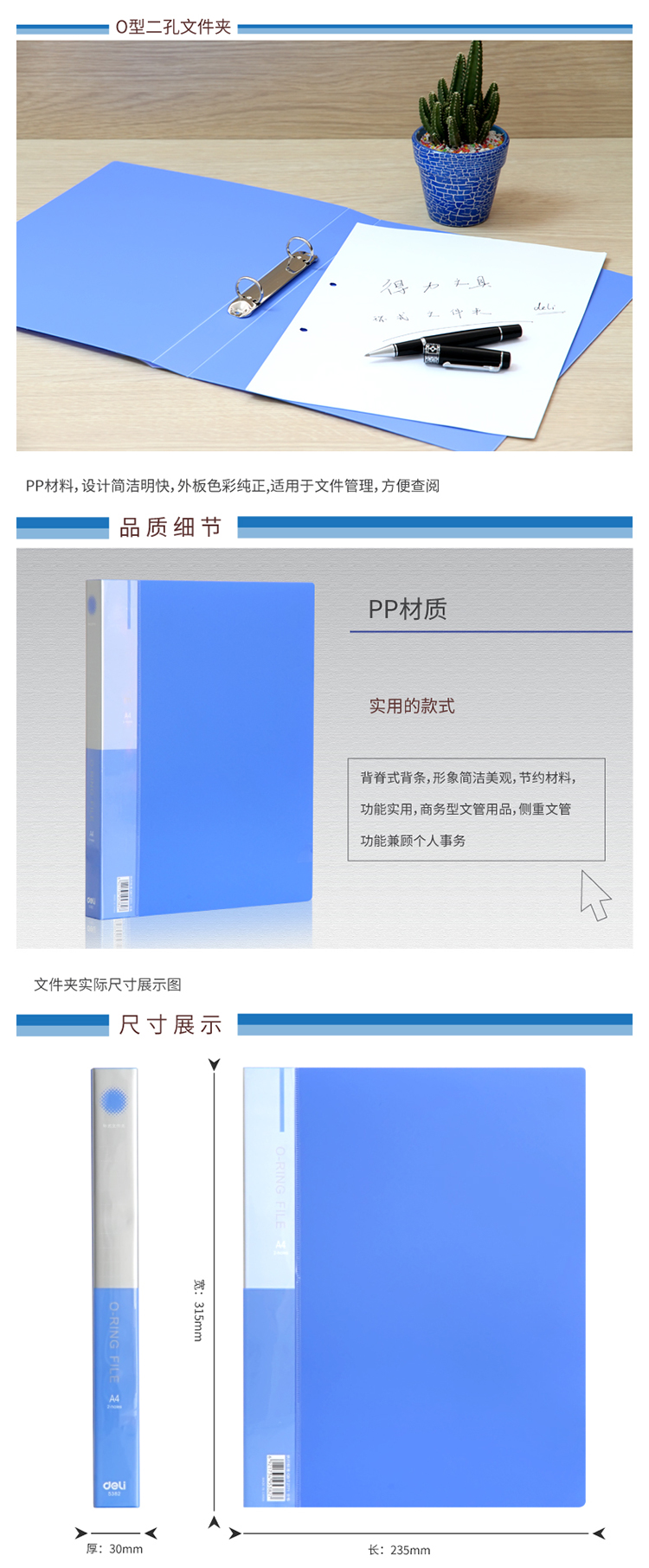 得力文件夾 5382 A4二孔O型 藍(lán) 單位:支