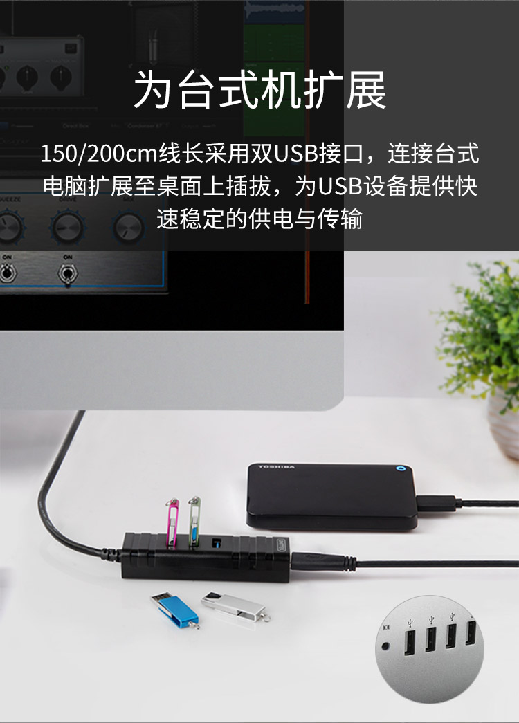 優(yōu)越者(UNITEK)分線器 高速擴(kuò)展一拖四多接口 USB3.0 Y-3056DBK 2米 單位:個(gè)