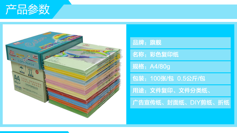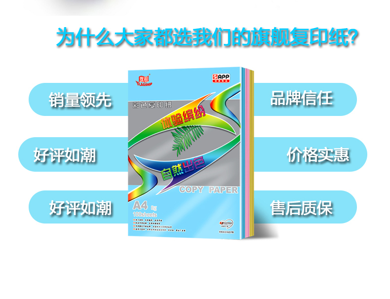 旗艦彩色復(fù)印紙 A4 80克 單位:100張/包