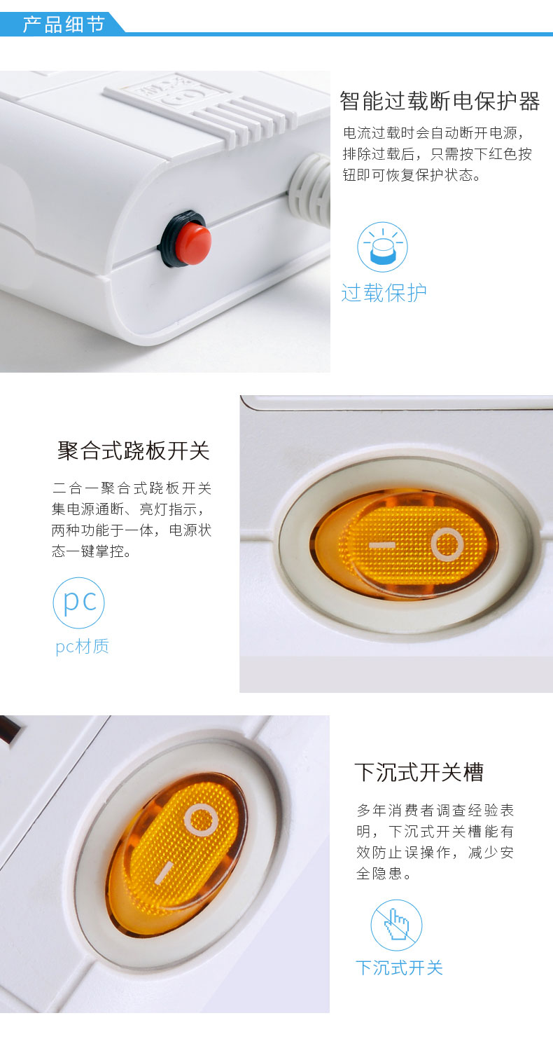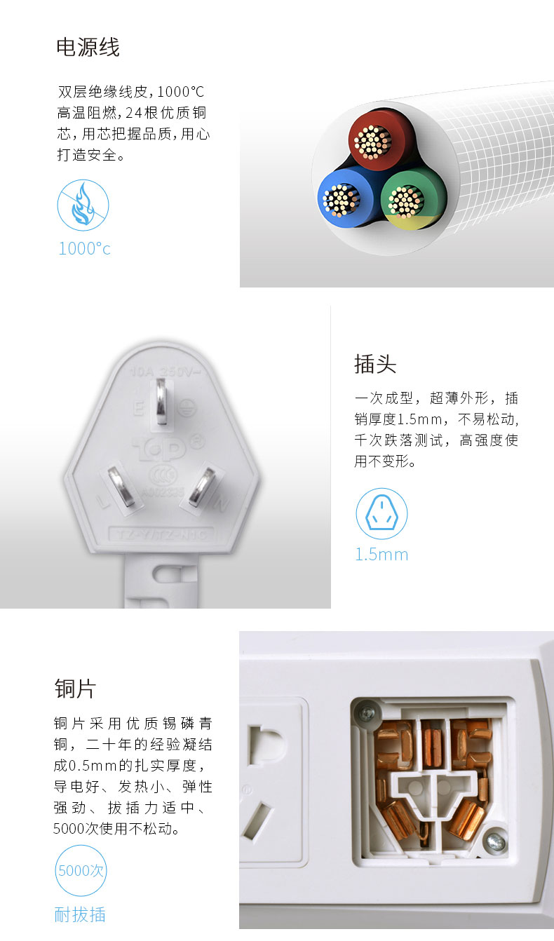 突破插座 TZ-T5K5 3米獨(dú)立開關(guān)分控插線板5孔 單位:個(gè)