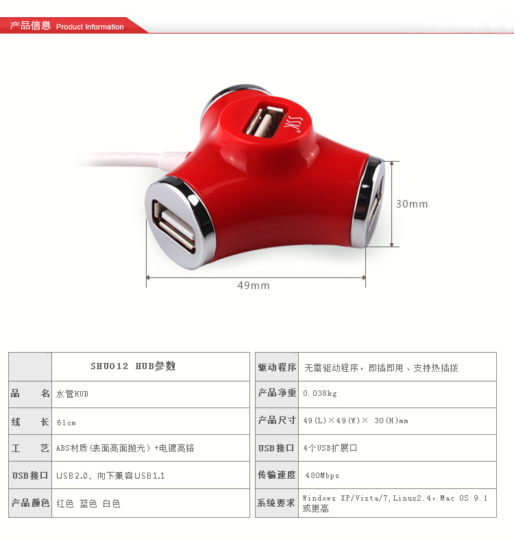 飚王SSK 筆記本臺式機辦公電腦USB集線器USB2.0 SHU012 單個裝
