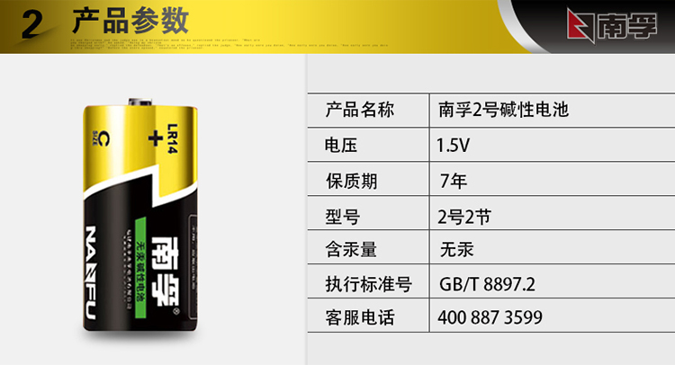 南孚電池 2號(hào)堿性電池2粒 單位:卡