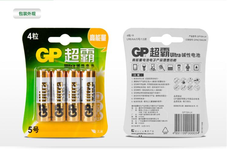 超霸電池 5號(hào)堿性電池4粒/卡 單位:卡