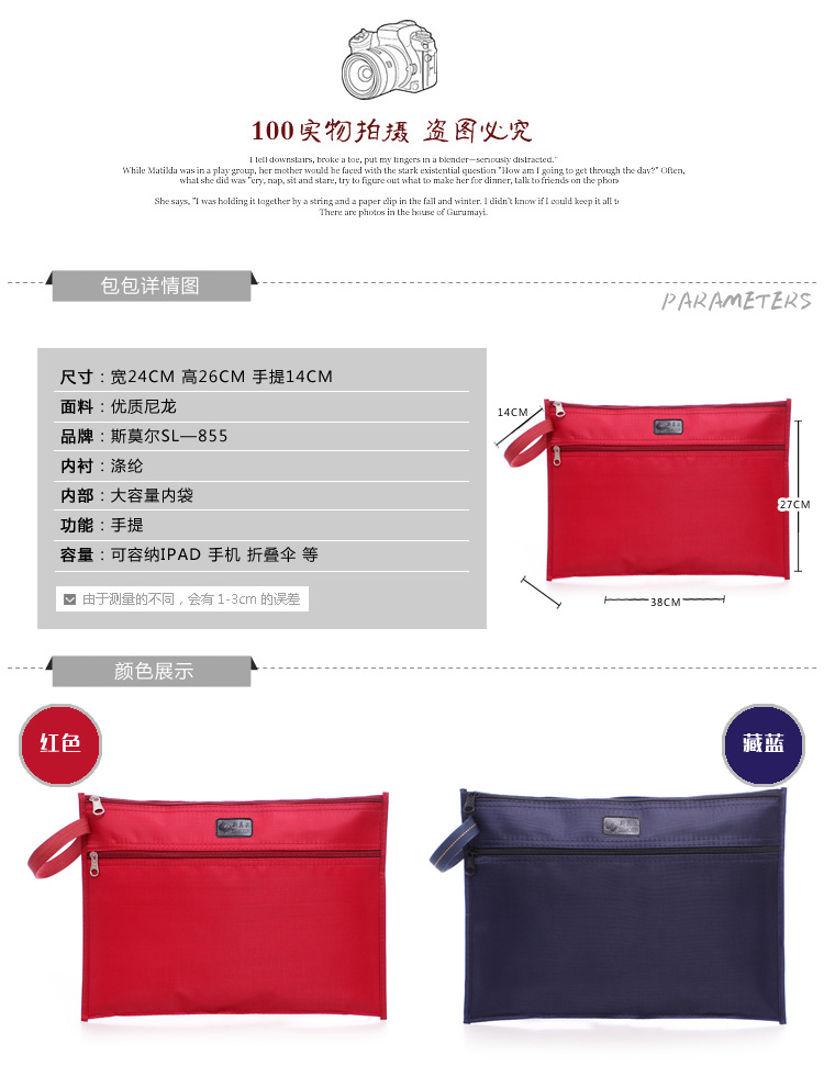 牛津布雙拉鏈手提文件袋會議袋 高27.5cm 寬38cm