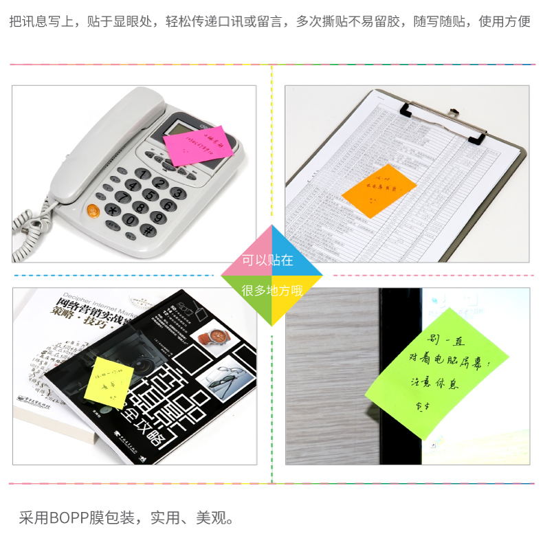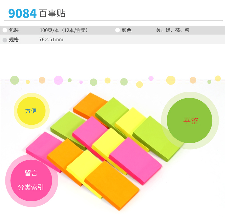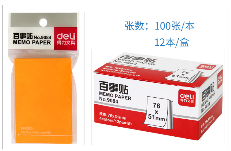 得力百事貼 9084 彩色76*51熒光色紙便簽紙 單位:包