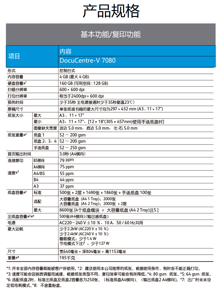 富士施樂復(fù)印機 DC-V 7080 基本配 激光復(fù)合復(fù)印機 單位:臺