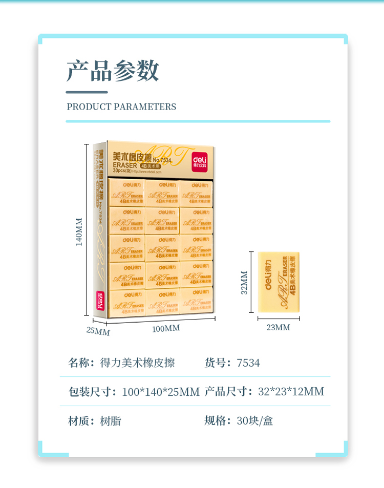 得力橡皮 7534 小號(hào) 單位:30塊/盒