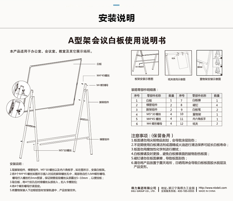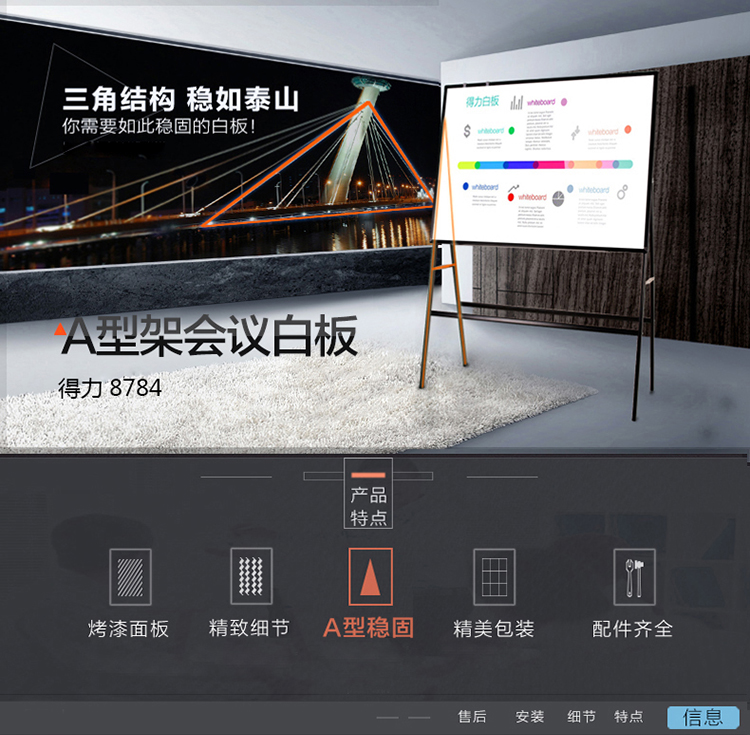 A型架帶架磁性辦公/會議白板