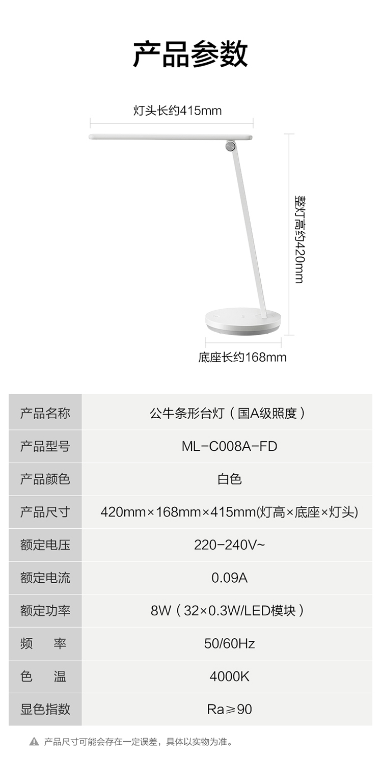 公牛臺燈 ML-C008A-FD(白色)國A級3檔調(diào)光 單位:個(gè)