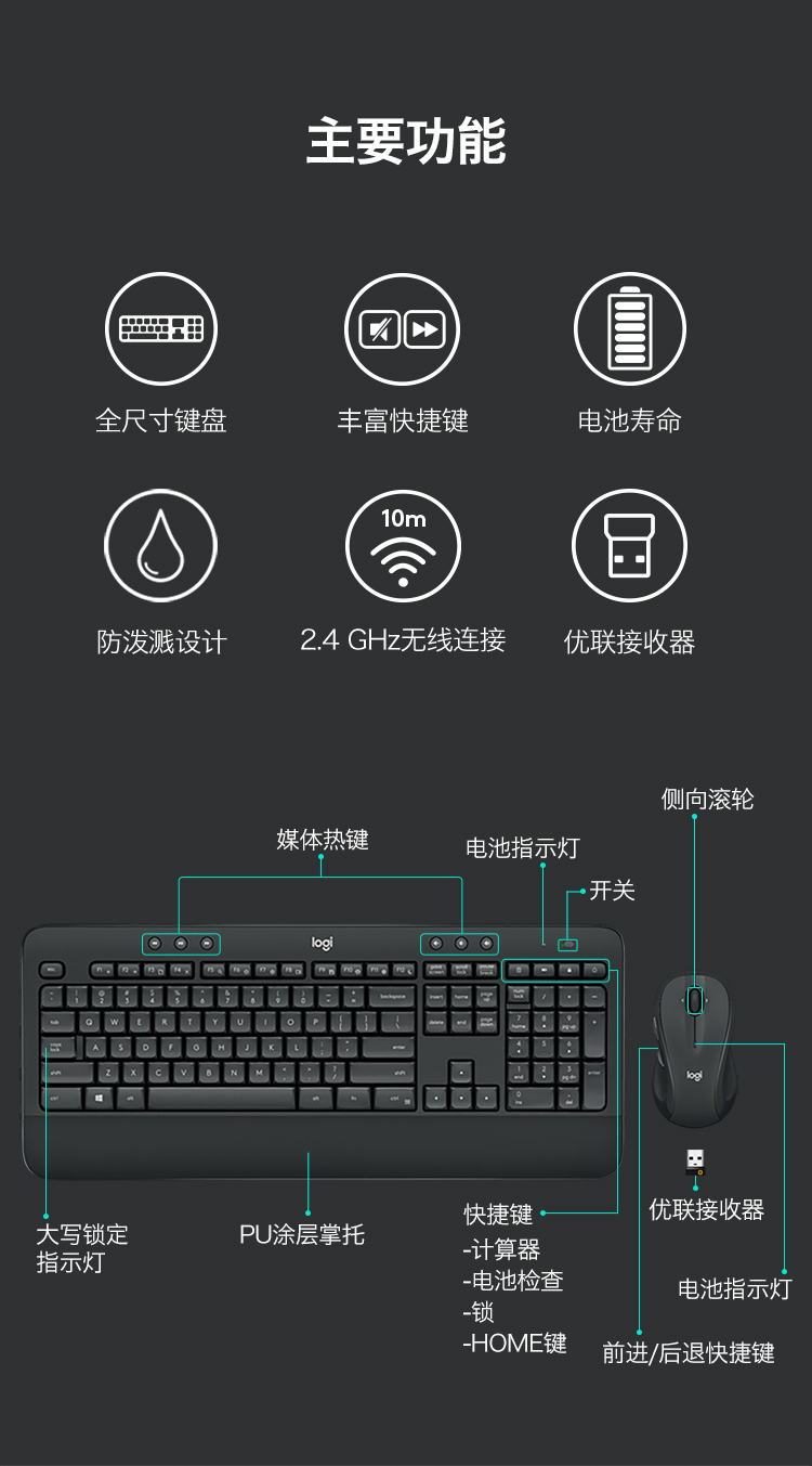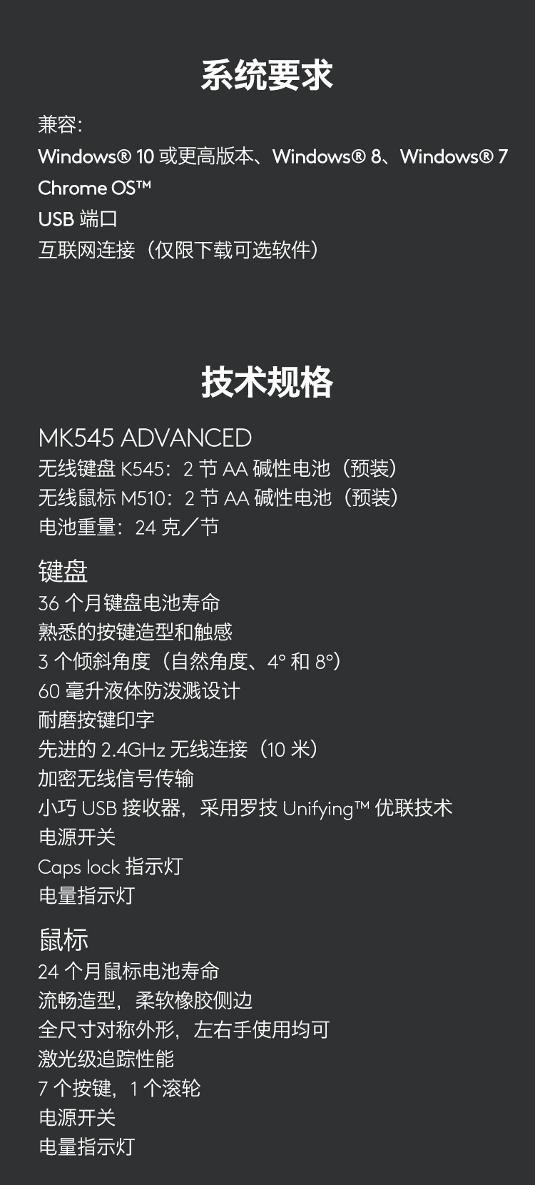 羅技無線鍵鼠套裝 MK545 黑色 單位:套