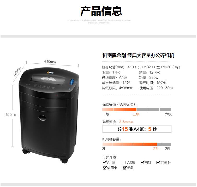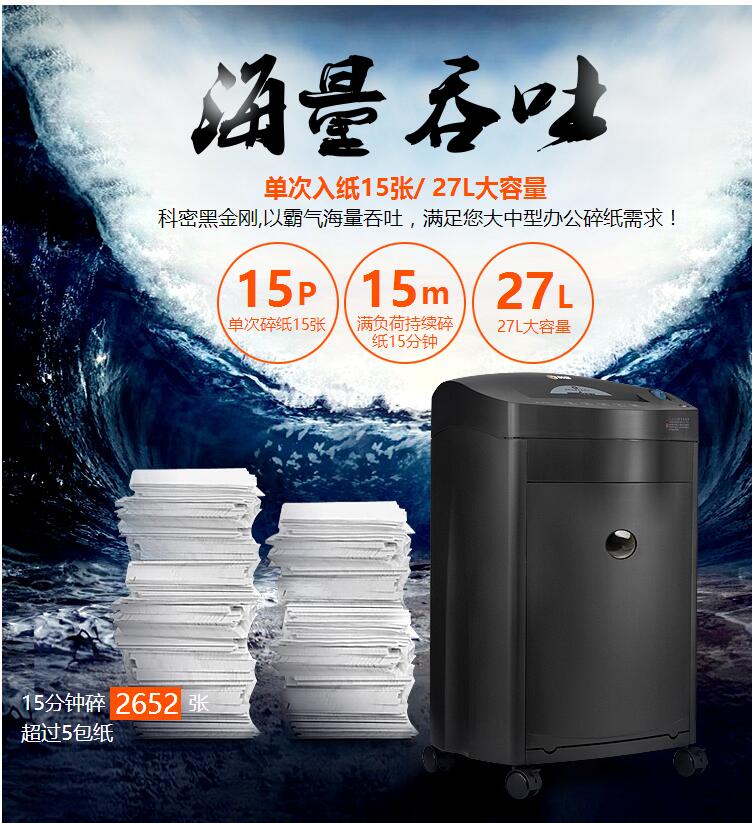 科密碎紙機(jī) 黑金剛 經(jīng)典大容量辦公碎紙機(jī)(碎卡光盤/高速靜音) 單位:臺(tái)