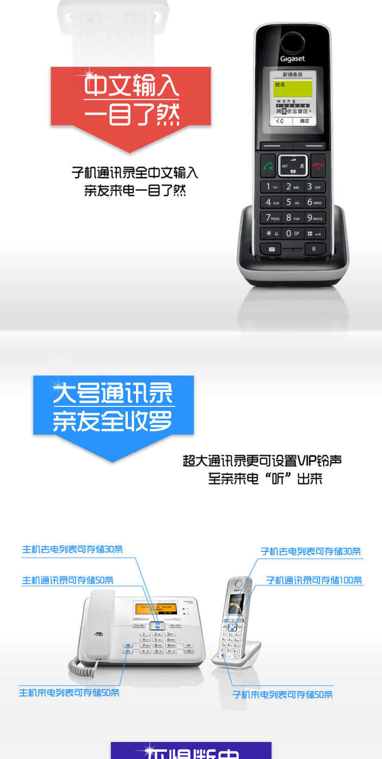 中文輸入無繩電話機須配合主機