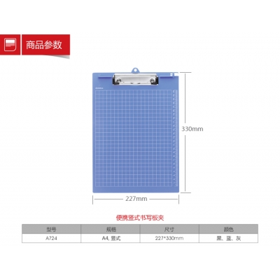 齊心書寫板夾 A724 A4帶刻度 單位:個