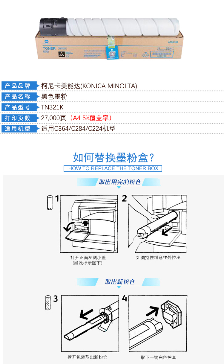 柯尼卡美能達(dá)墨粉 TN321K 黑色 單位:支
