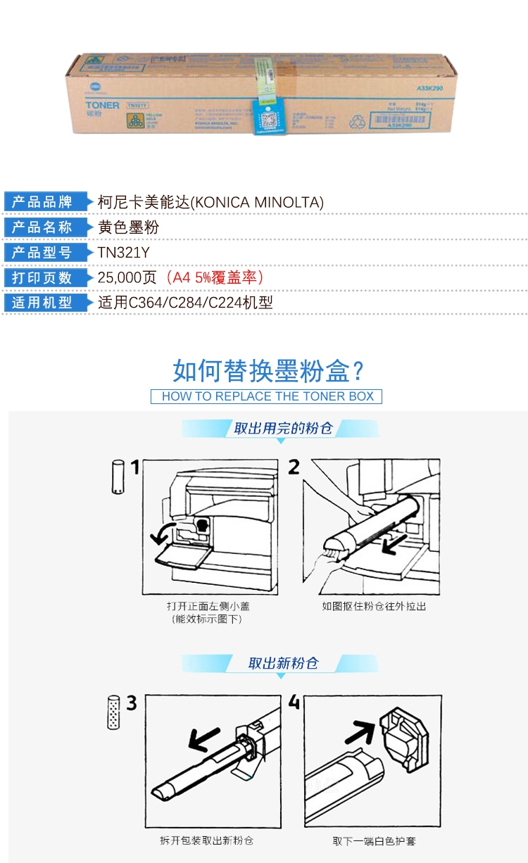 柯尼卡美能達墨粉 TN321Y 黃色 單位:支