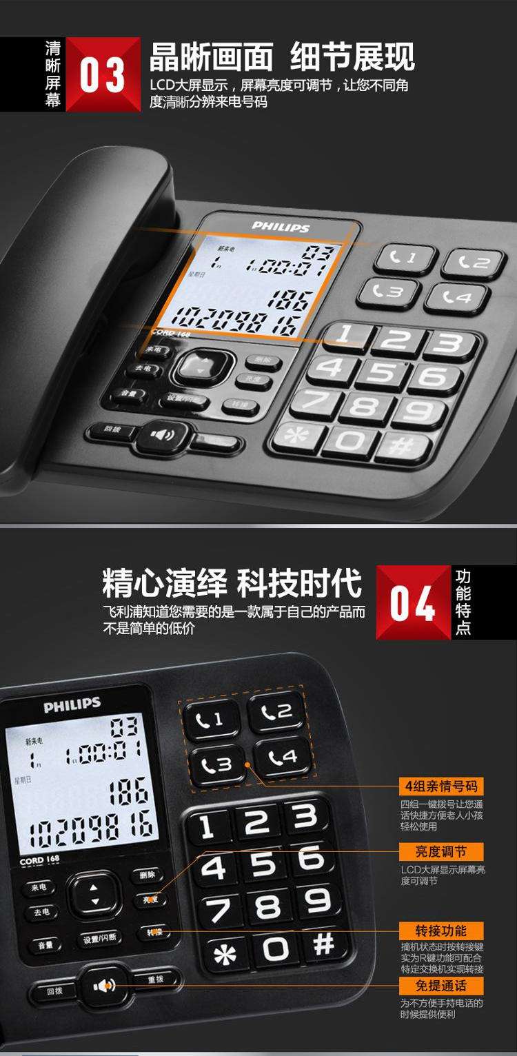 飛利浦電話 CORD168 黑色 單位:個(gè)