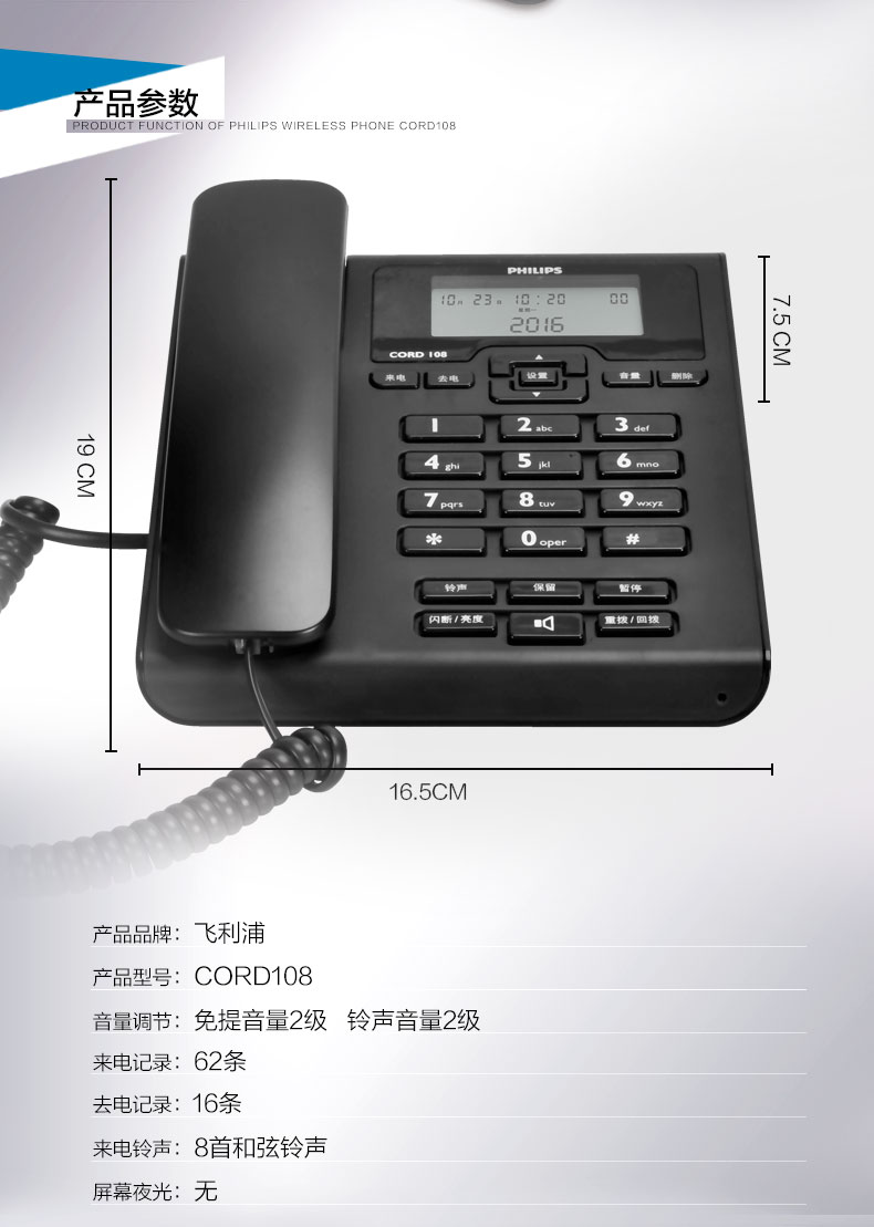 飛利浦電話 CORD108 (黑色) 單位:個