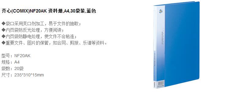 齊心(Comix) NF20AK 資料冊 藍(lán)色 單位:個(gè)