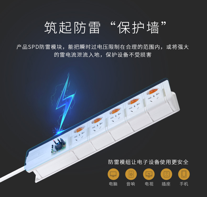 防雷抗電涌/防過載 插線板/插排/插板/接線板