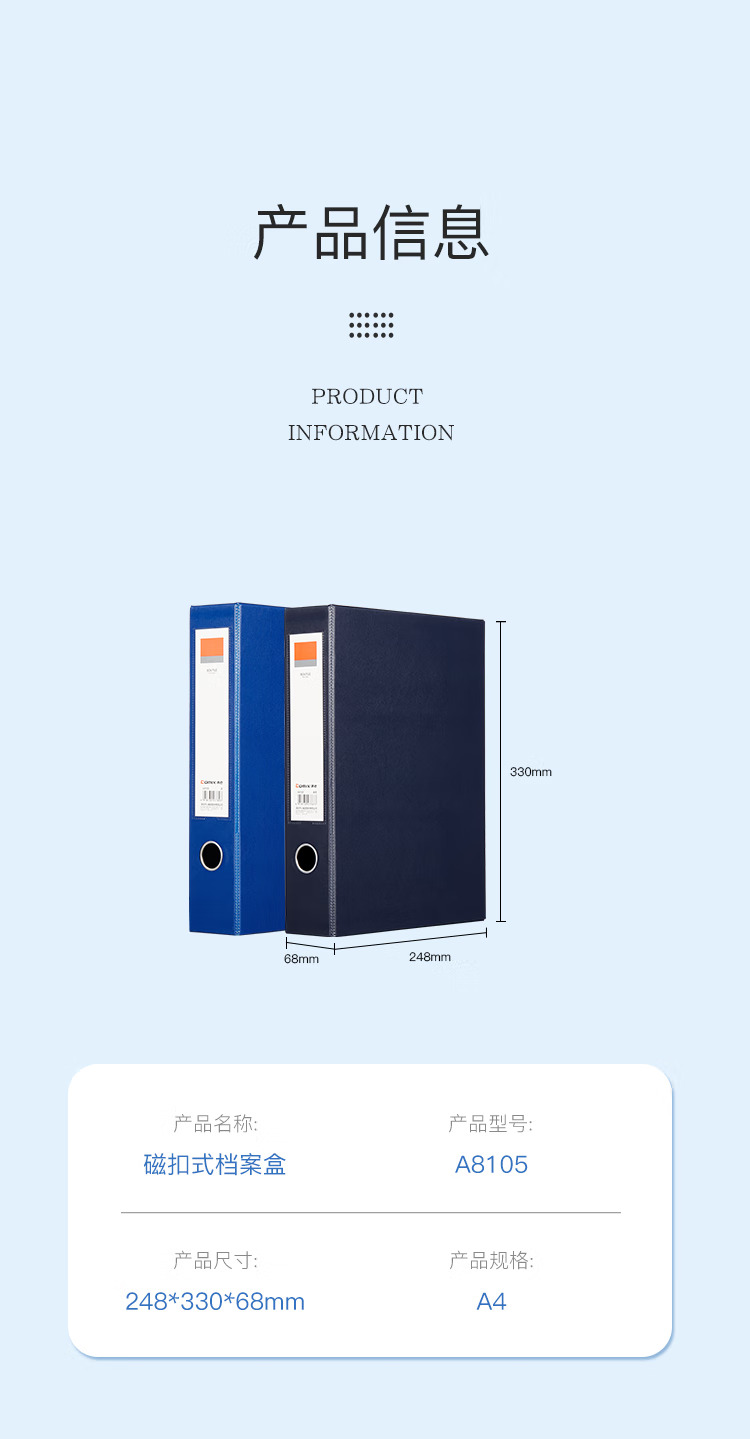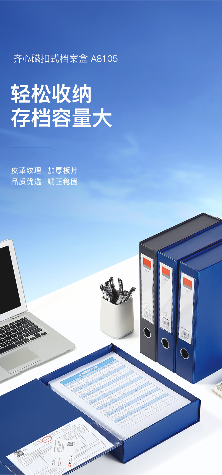 齊心加厚檔案盒 A4磁扣式 藍(lán)色 A8105 單位:個