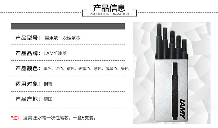 凌美墨水 T10簽字筆鋼筆專用一次性墨水膽 單位:盒