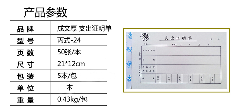 成文厚支出證明單 301-24 報銷單據(jù) 單位:本
