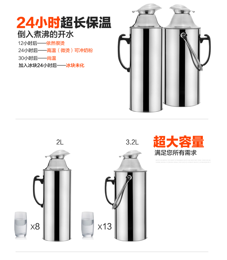 鹿牌 0364 不銹鋼暖瓶玻璃內(nèi)膽暖壺大容量暖水壺 8p