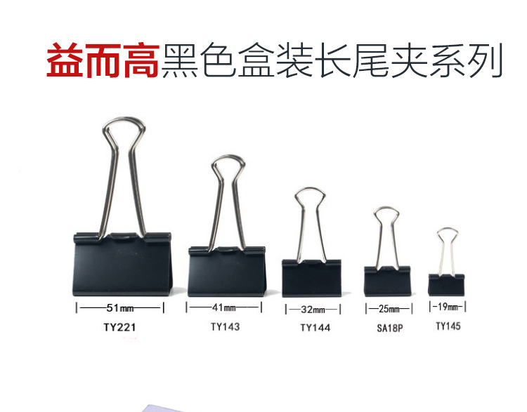 益而高長(zhǎng)尾夾紙盒裝 金屬黑色 41mm 單位:盒
