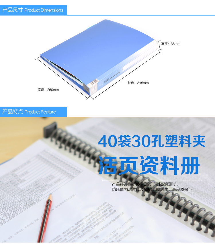 /文件冊(cè)A4 40頁(yè)活頁(yè)30孔塑膠夾