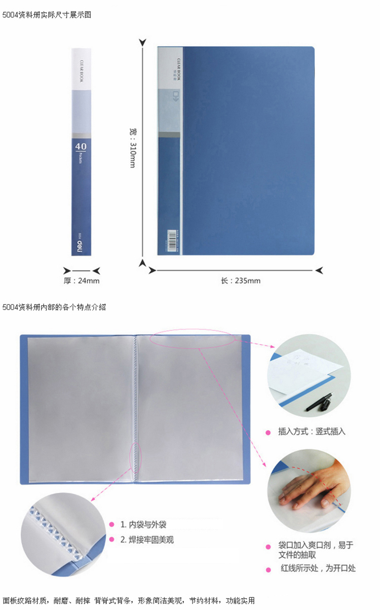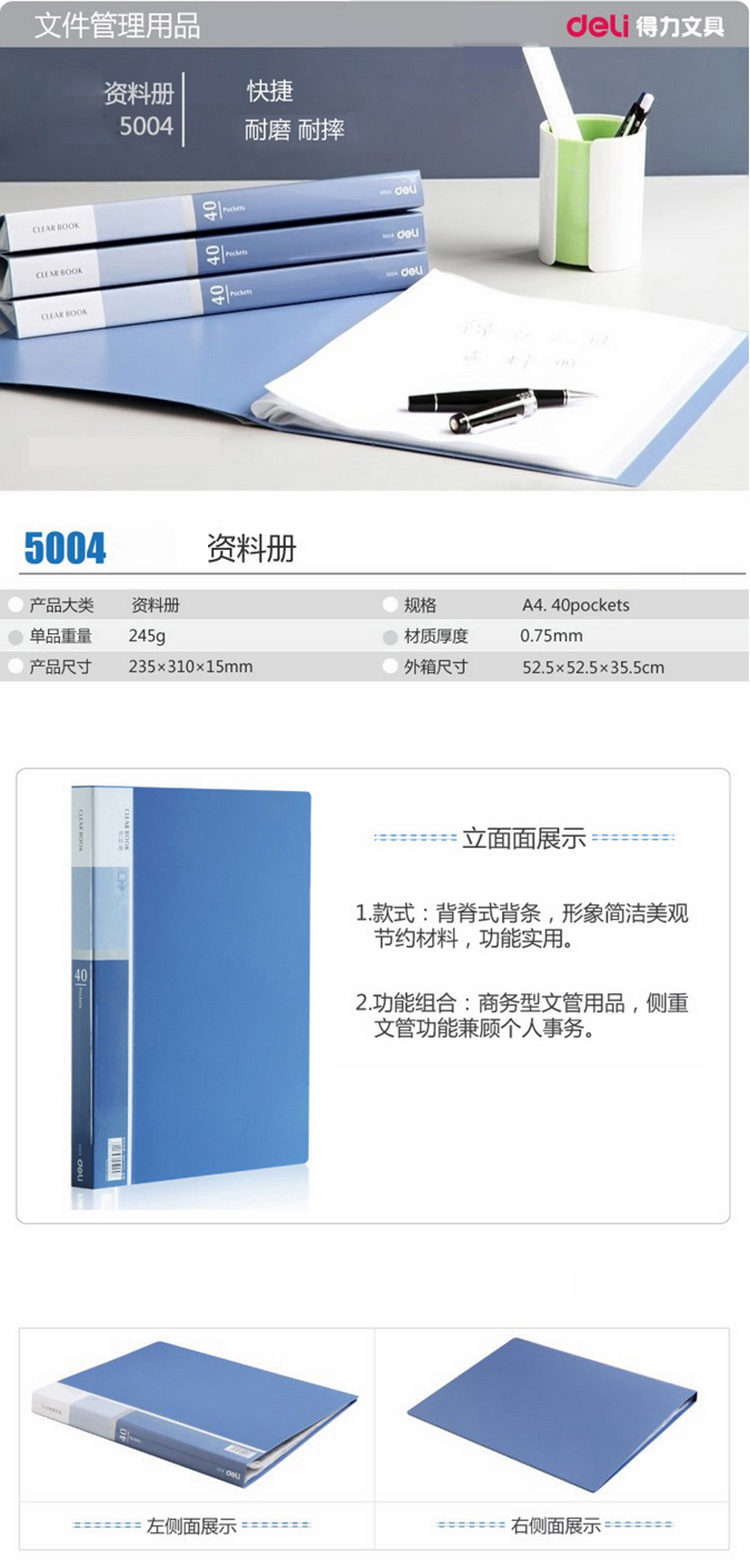 A4/40頁 資料冊(cè)/文件冊(cè) 藍(lán)色單只裝