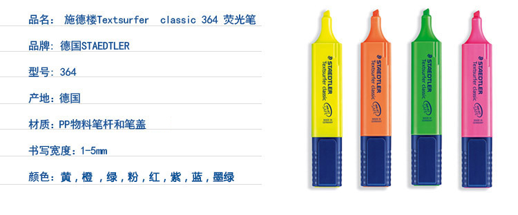 施德樓熒光筆 364 藍色 單位: 10支/盒