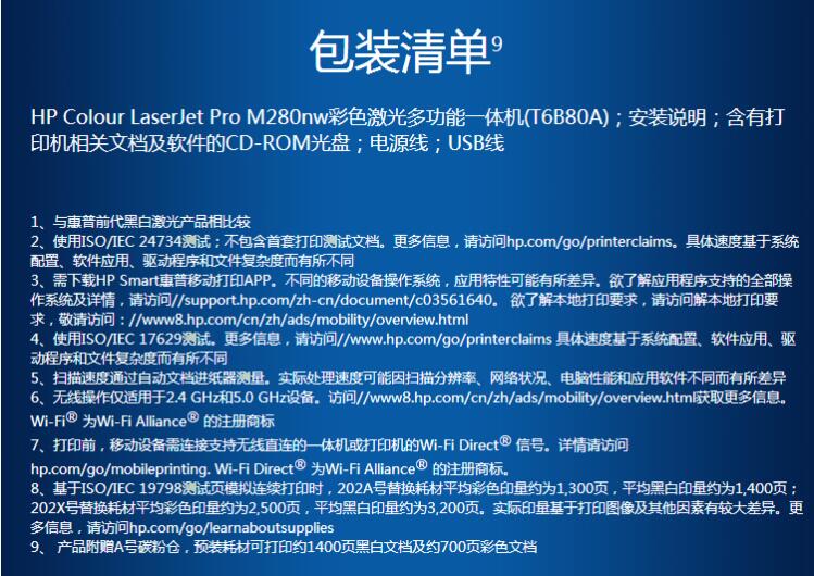 惠普多功能一體機(jī) M280nw 彩色激光 單位:臺