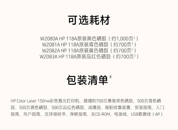 惠普 150A A4彩色激光打印機(jī) 鼓粉分離 單位:臺(tái)