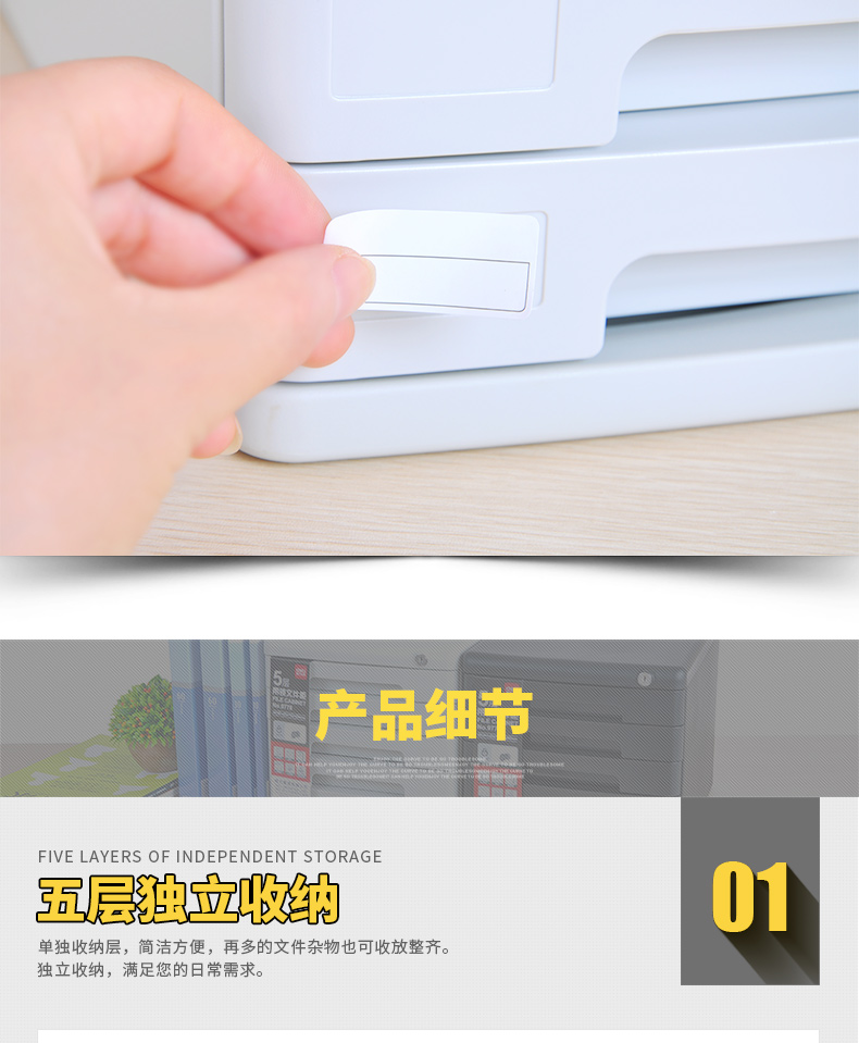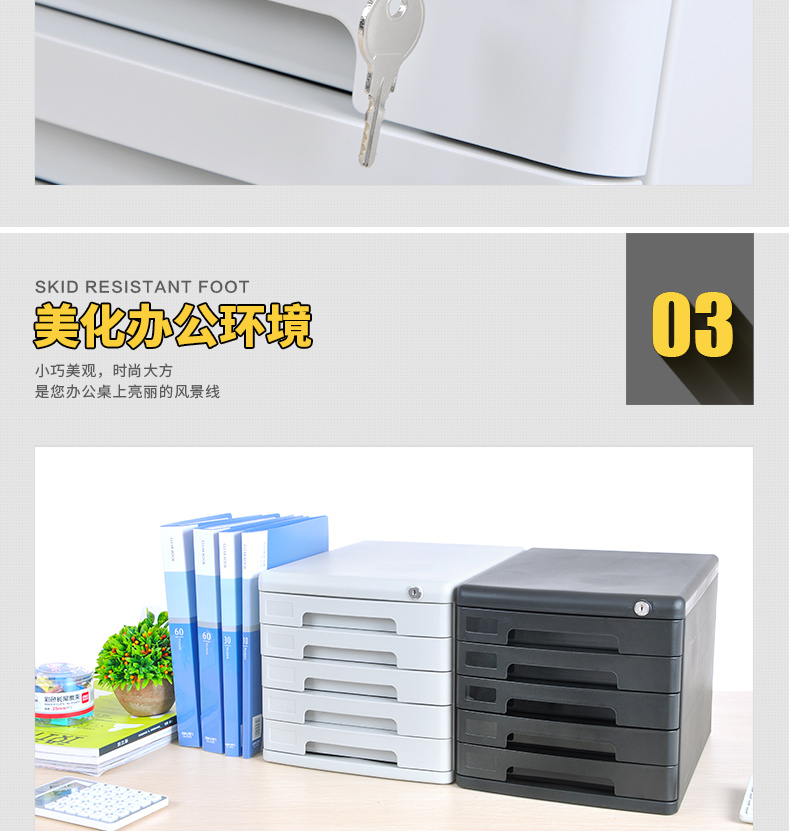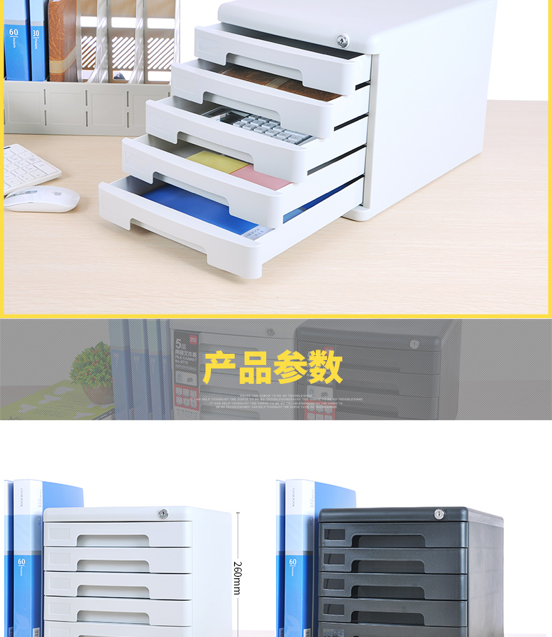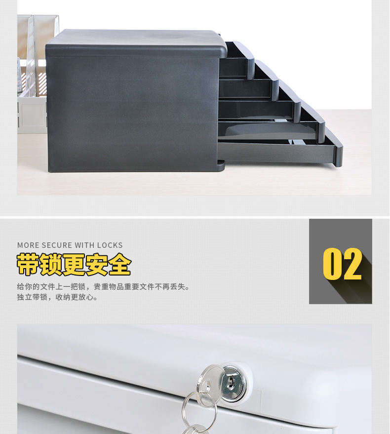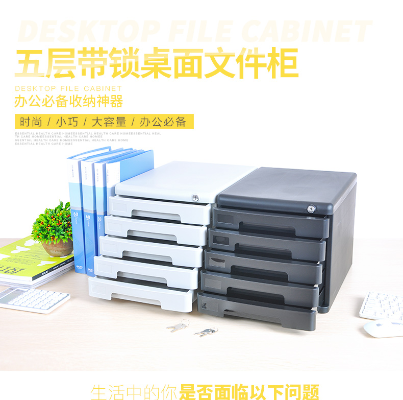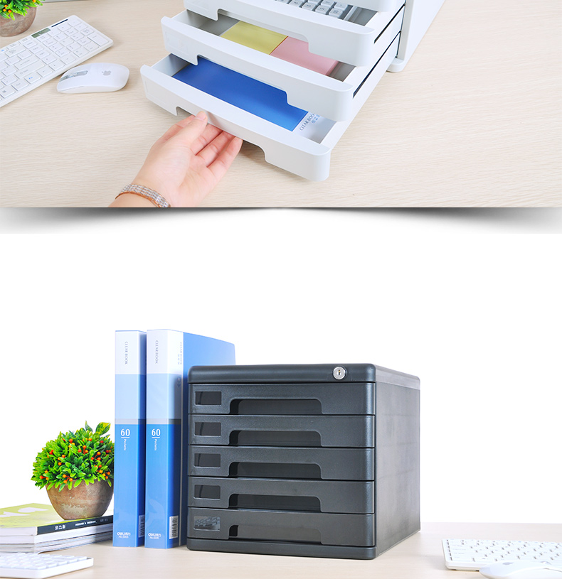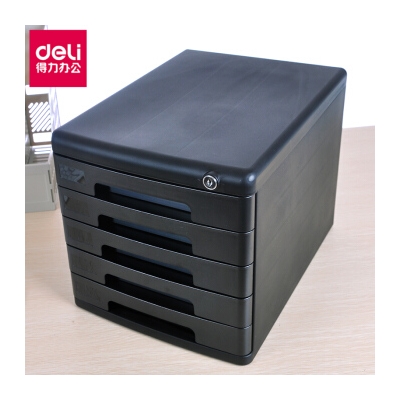 得力文件柜 9778 桌面資料整理文件柜5層帶鎖 黑色 單位:個