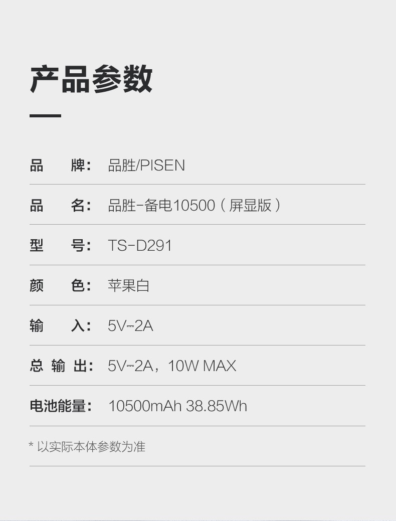 品勝移動電源 10500毫安小巧迷你便攜移動電源輕便 單位:個