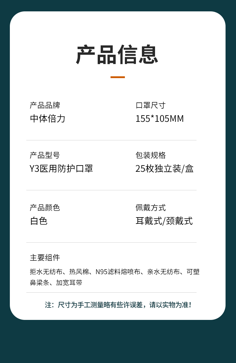 中體倍力口罩 Y3-25 N95 單位:25只/盒