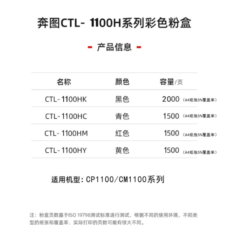 奔圖(PANTUM)CTL-1100HC 高容量青色粉盒 單位:支
