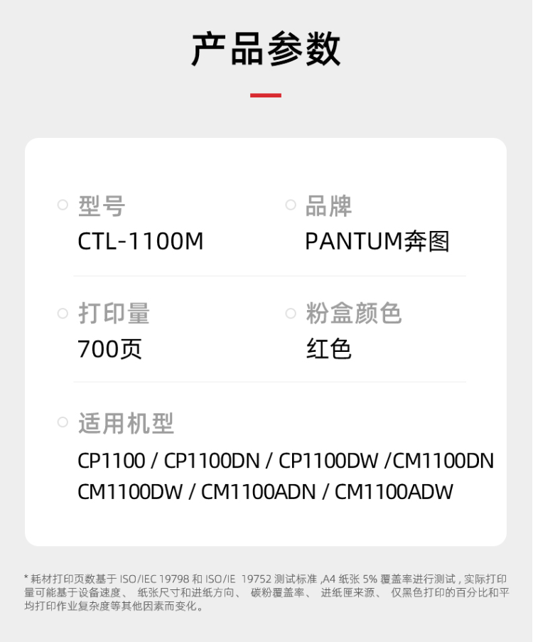 奔圖(PANTUM)CTL-1100M 紅色粉盒 單位:支