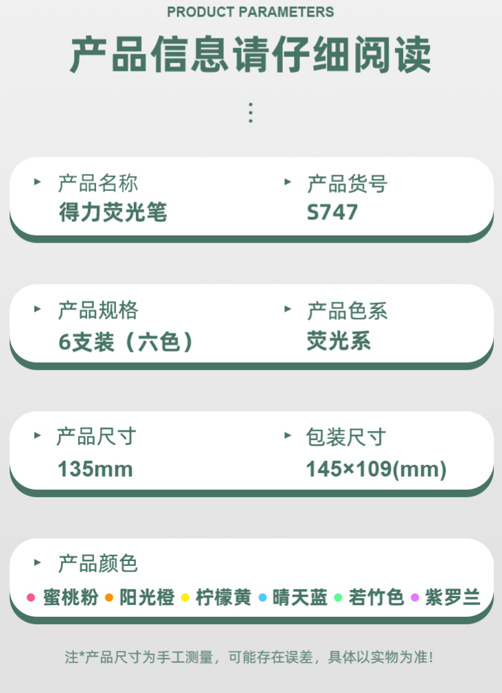 得力熒光筆 S747 混色 單位:6支/袋