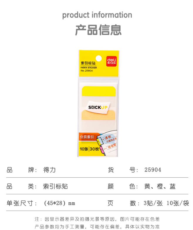 得力索引標(biāo)貼 25904 大號(hào) 單位:10張/包